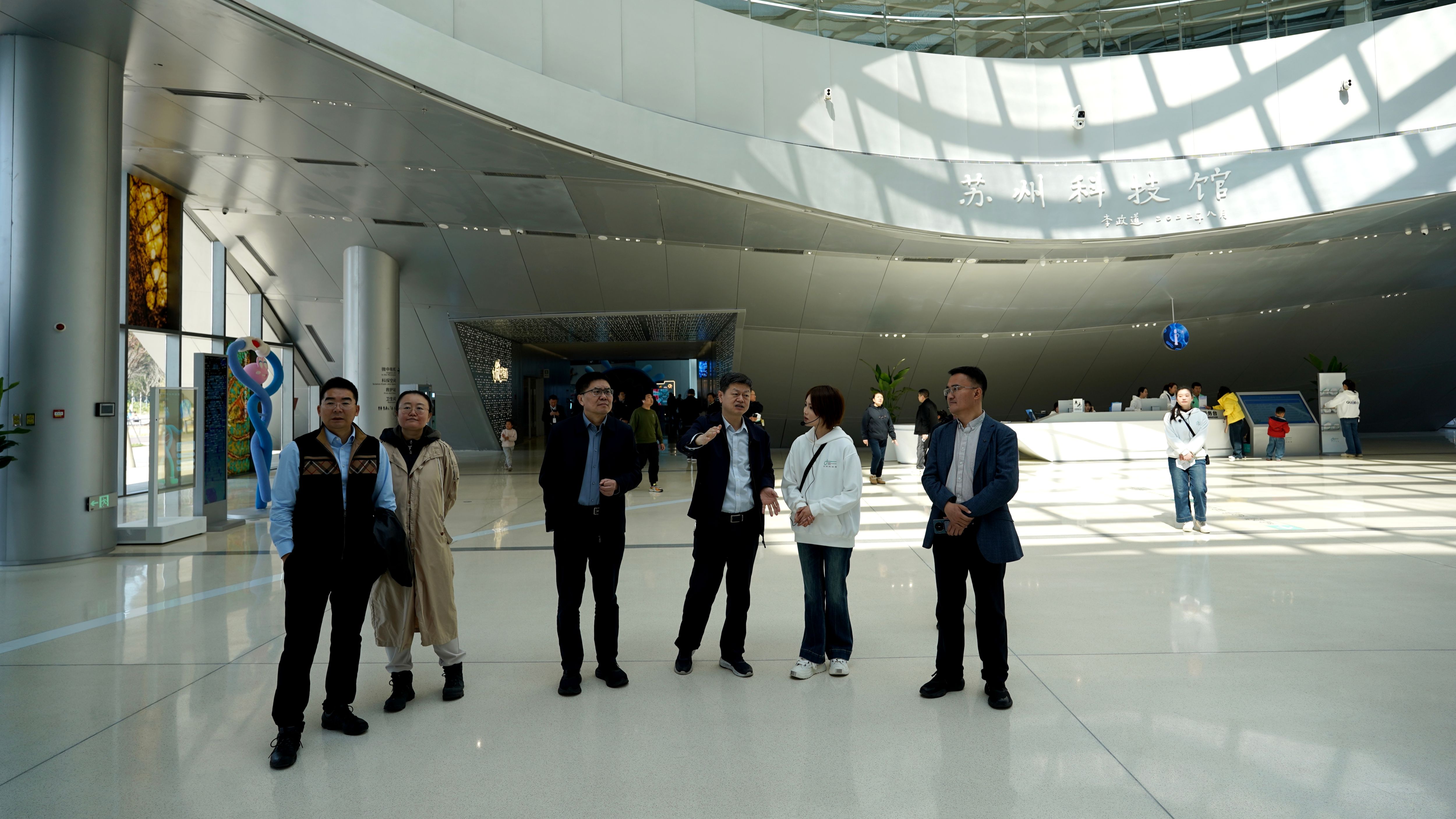 王禄山一行首先参观了苏州科技馆。该馆以‘微观世界’为主题,是全国首家以微观视角为核心的科技馆,其中“无微不至”展厅由山东大学微生物改造技术全国重点实验室科普团队原创策划并主导设计。王禄山对展陈设计理念和呈现效果给予高度评价,表示苏州科技馆将微生物技术的前沿成果与科普展示深度融合,既体现了山东大学在微生物领域的学科优势,也展现了校地合作在科技文化建设中的积极成效。