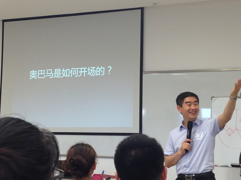 活动开场,陈璋老师以家庭、星座、血型等话题与大家互动,瞬间拉近了与听众之间的距离,引出了如何更好的沟通这一主题。随后,他通过调查数据和精彩案例分析了非语言类因素在沟通中的重要作用。陈老师在现场与听众一起体验肢体语言的魅力,通过现场演示感受站姿、走动、手势、眼神、表情对于沟通的影响,示范了如何正确运用这些肢体语言的技巧。紧接着,陈老师用奥巴马的精彩开场案例与大家分享了演讲开场要解决的关键问题包括:抓住注意力、营造聆听兴趣以及给听众下“心锚”。最后,他以一句“Change your words! Change your world!”送给大家,也赢得了全场热烈的掌声。