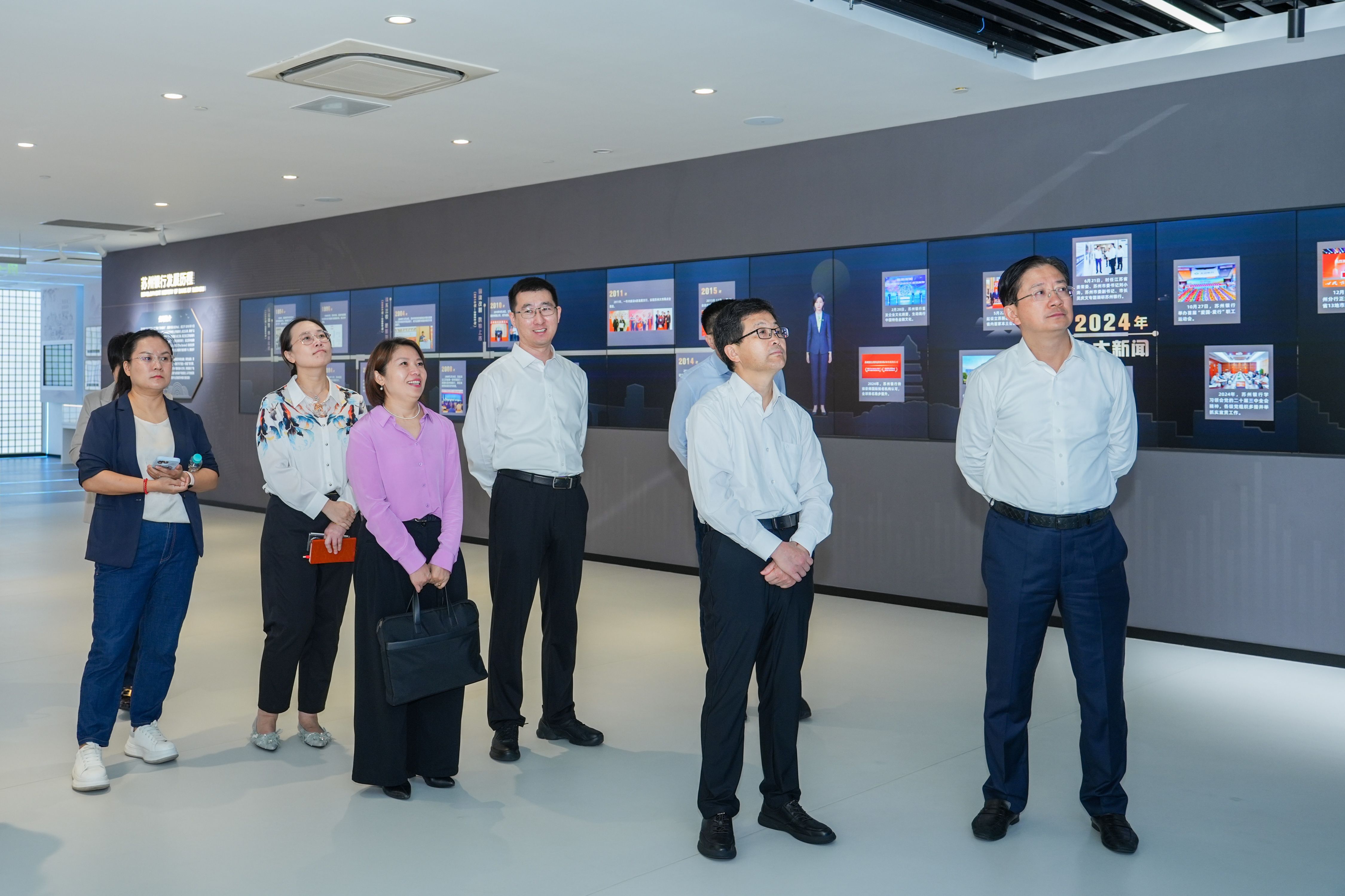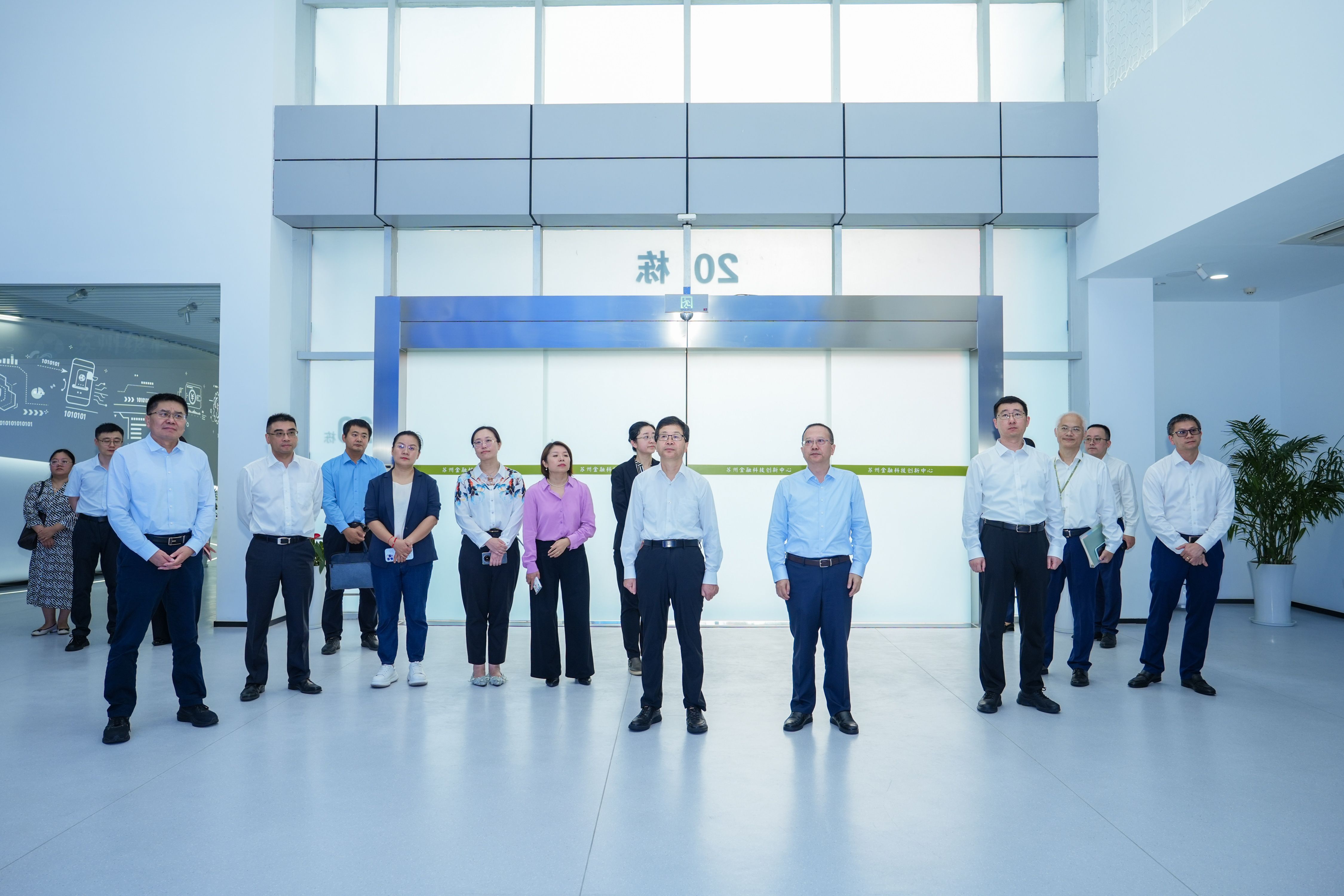 签约活动前,陈宏伟一行参观了苏州金融科技创新中心、苏州银行总行职工服务中心及行史文化体验中心。
