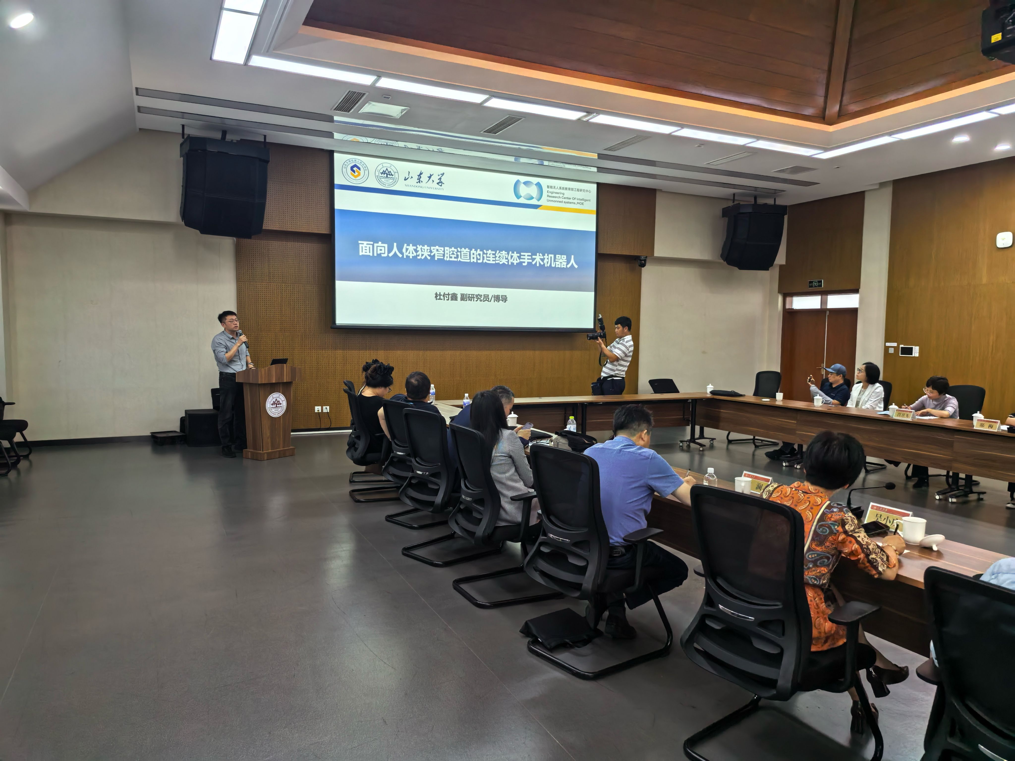 在成果推介环节,来自环境科学与工程学院副研究员王志彬、信息科学与工程学院副教授熊海良以及机械工程学院副研究员杜付鑫分别推介了“低碳水污染控制技术”“智能感知与安全”“面向人体狭窄腔道的连续体手术机器人”等可转化科研成果。企业代表围绕技术适配、联合攻关等提问,专家现场答疑,气氛热烈。