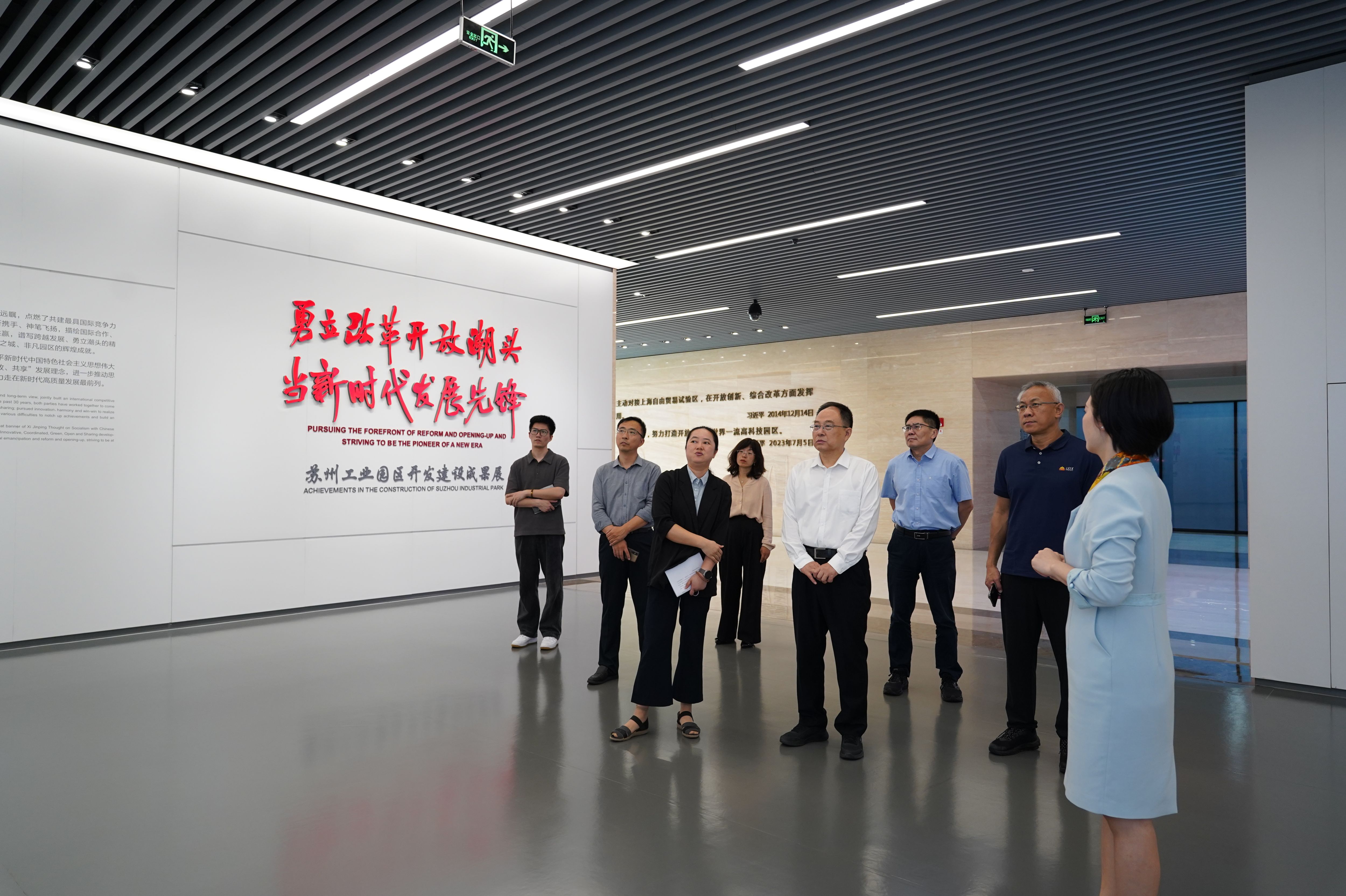 调研期间,陈向阳一行参观苏州工业园区规划展示馆,深入了解园区在科技创新、产业升级、制度开放等方面的先进经验。苏州独墅湖科教创新区党工委委员、管委会副主任陈淼陪同参观。苏州工业园区以“敢为、敢闯、敢干、敢首创”的精神,在科技创新与产业创新融合、深层次改革和高水平开放等方面取得显著成就。希望双方依托苏州研究院的桥梁纽带作用,在科学研究、人才培养、党建交流等方面进一步深化合作。