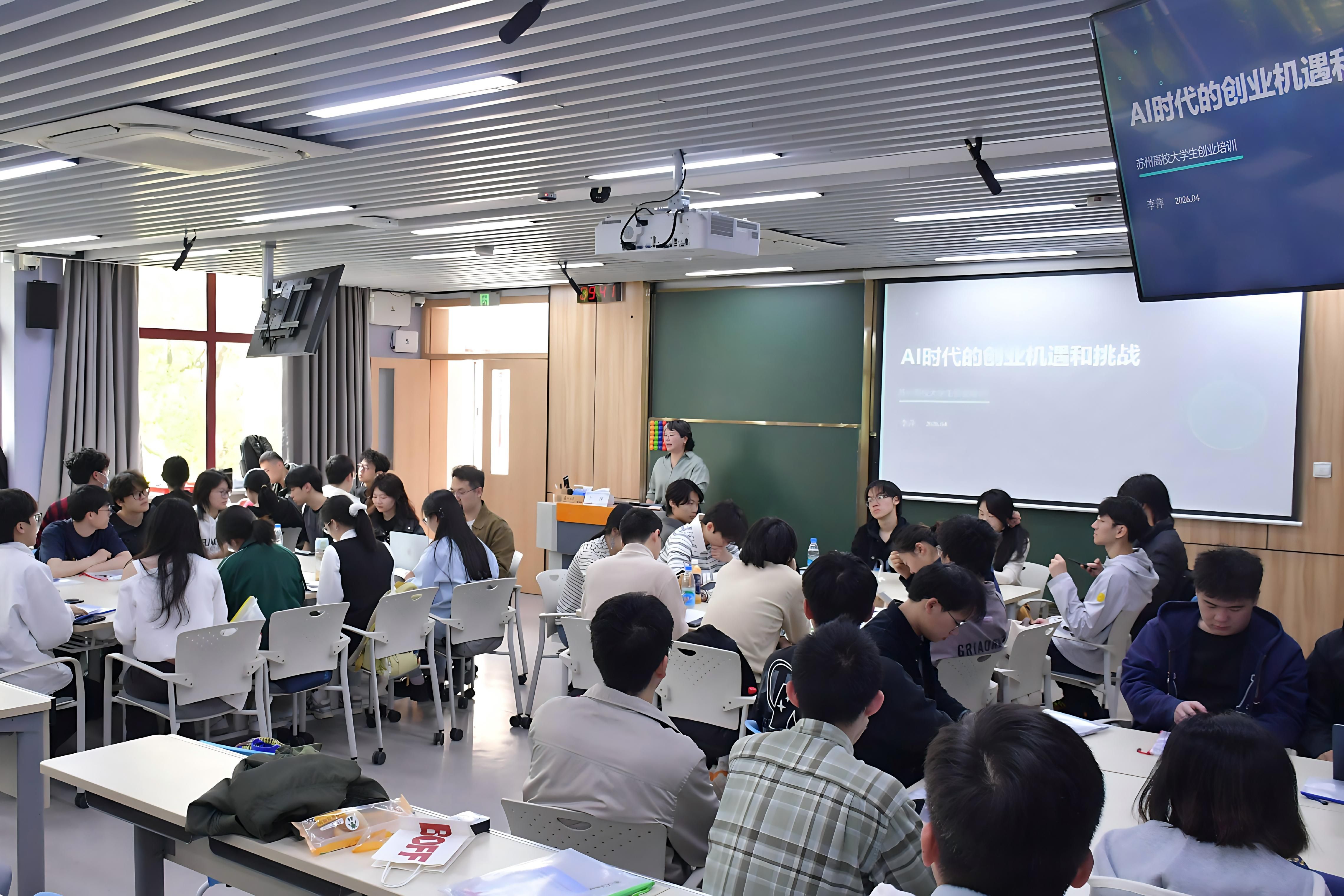 4月18-19日,2026年苏州市首期人工智能OPC创业训练营(高校)活动在苏州大学成功举办。本期创业训练营由苏州市劳动就业管理服务中心和苏州大学创新创业学院联合主办,山东大学苏州研究院承办,来自苏州大学各院系怀揣创业梦想的学子,在周末两天的时间里,完成了一场从认知重构到工具落地的AI创业跃迁。