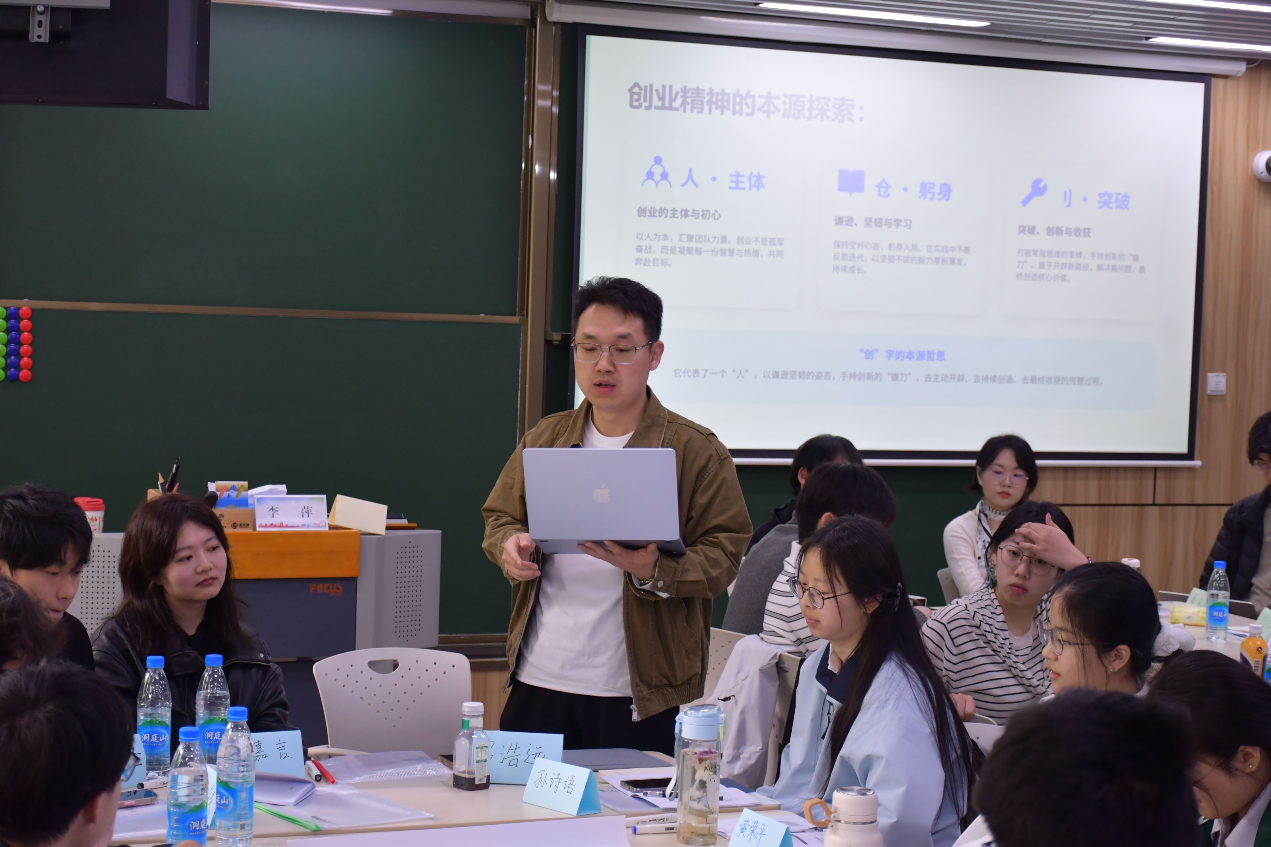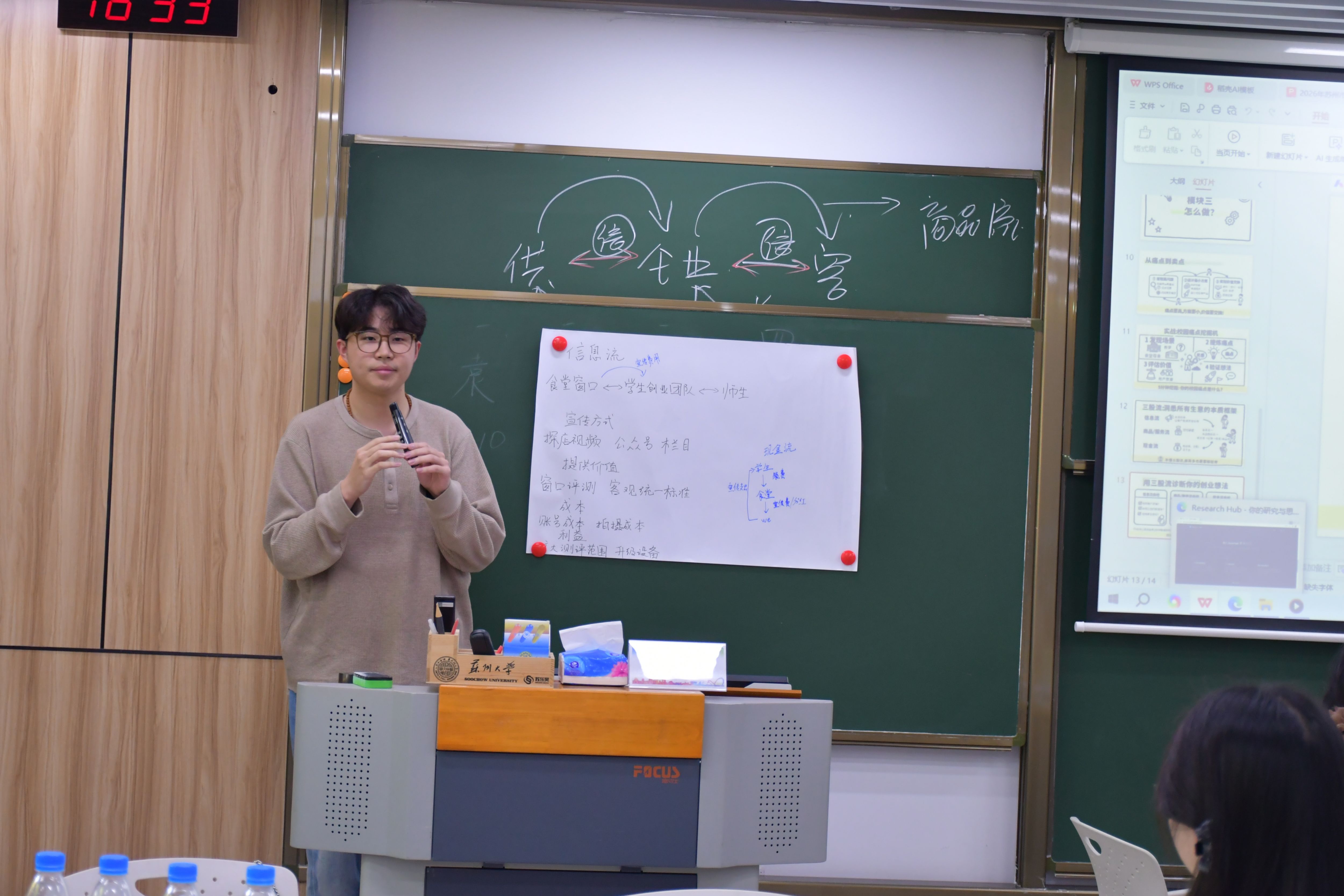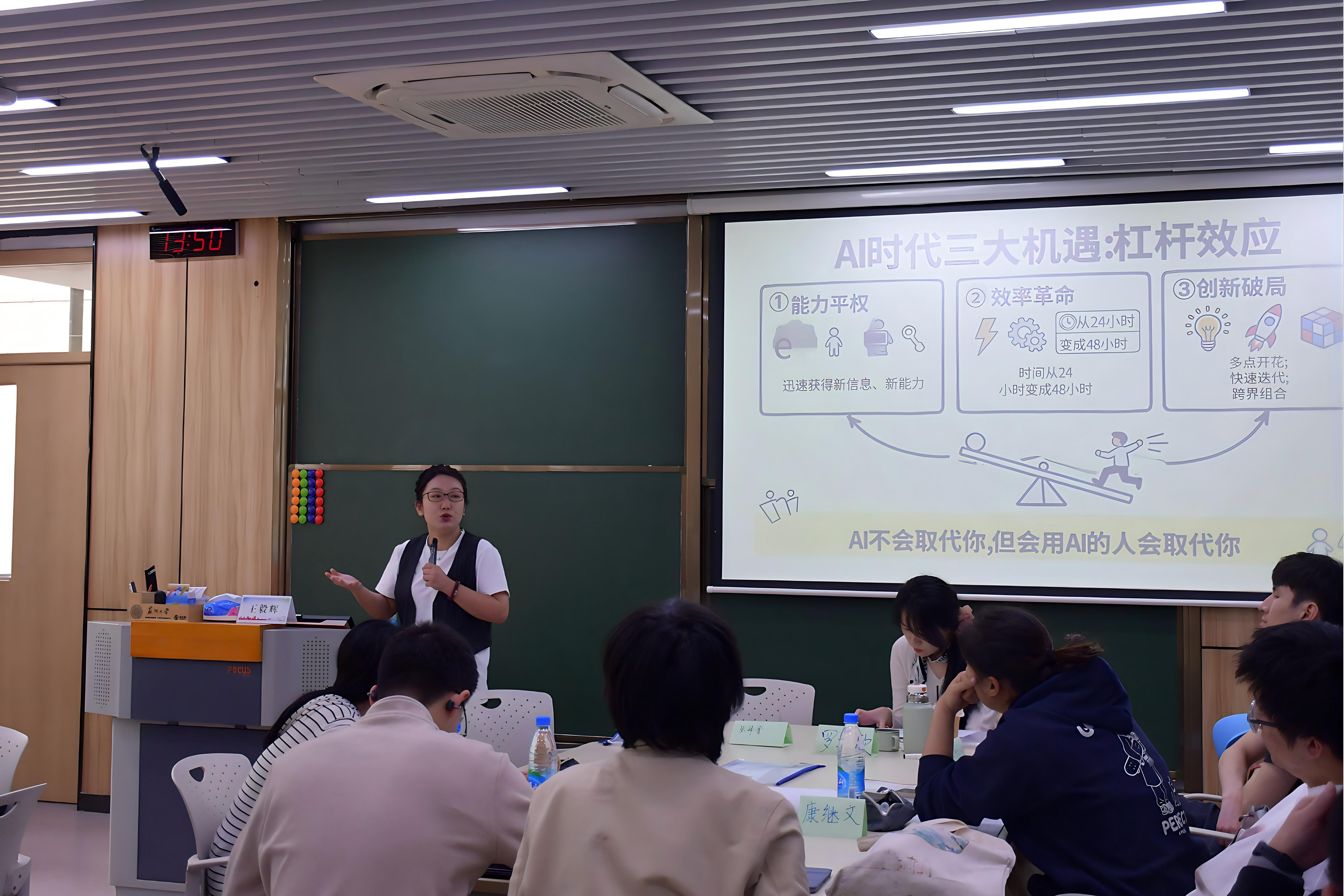 首日下午,高级创业指导师、江苏省创业培训五星讲师王毅辉老师接棒,为大家带来一场认知升级之旅,引导学员完成从“AI操作员”到“AI指挥官”的思维跃迁。她指出,很多人误以为创业的终点是创办一家公司或拿到一笔融资,但本质上,创业的核心是发现需求并创造价值。现场学员以分组讨论形式,挖掘校园创业场景、提炼创业痛点,并作价值评估,最终验证想法。此外,同学们通过洞悉所有生意的本质框架,即信息流、商品/服务流、现金流这三股流进行自检创业想法,确保商业逻辑自洽、闭环完整。