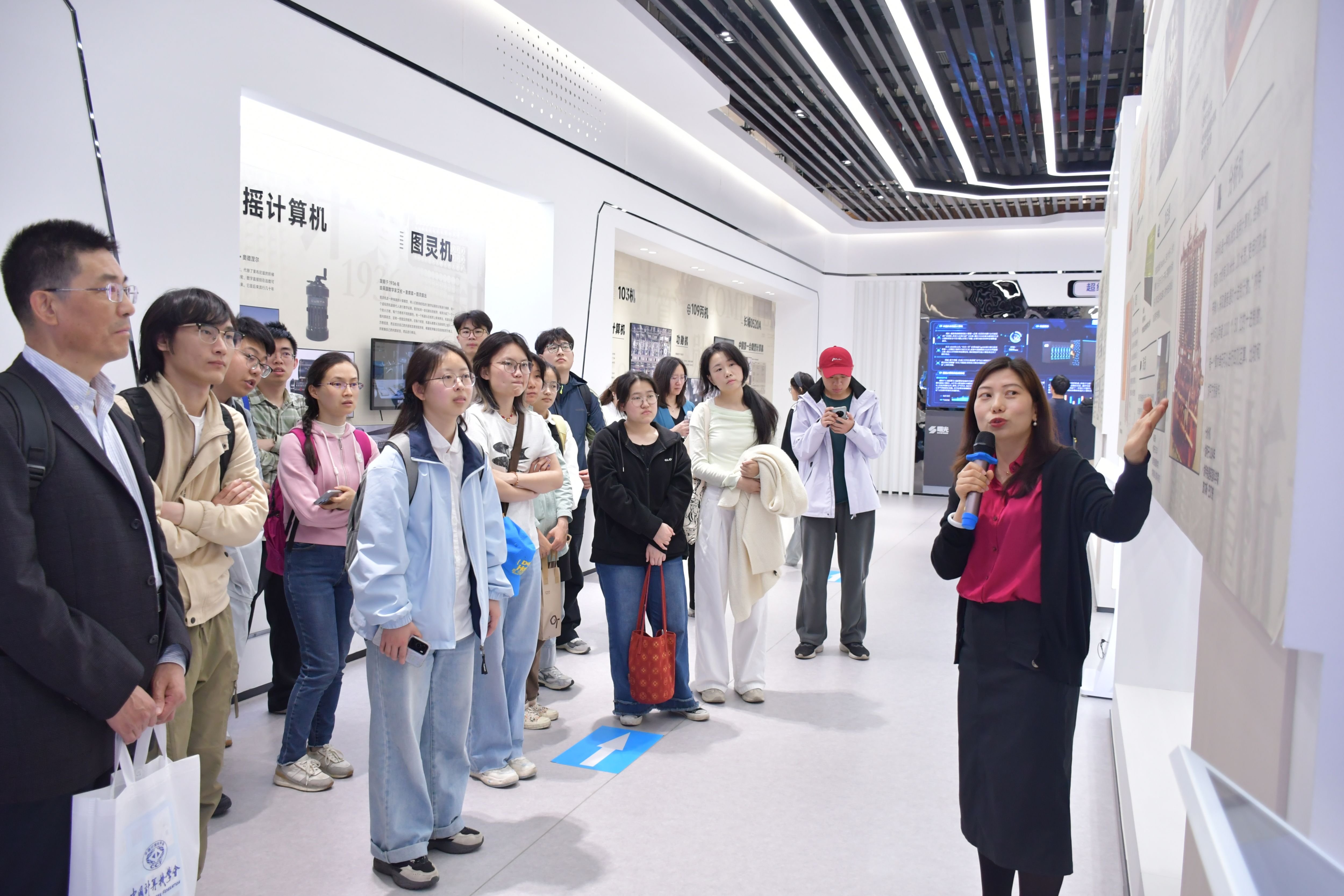 次日下午,同学们走出校园,前往中国计算机学会苏州业务总部。在科普展厅,讲解员详细介绍了计算机技术发展历程,同学们在此过程中近距离感受到了科技创新带来的历史性变革。苏州市计算机学会秘书长王涛老师还为大家带来了一场题为《OPC时代AI驱动的应用实践》的讲座。他以AI与机器人技术的产业应用为话题展开,围绕人工智能技术落地场景、跨界融合趋势、AI对创意产业的影响以及个人能力构建等核心议题,强调了在技术快速迭代背景下深耕垂直场景与培养复合思维的重要性。