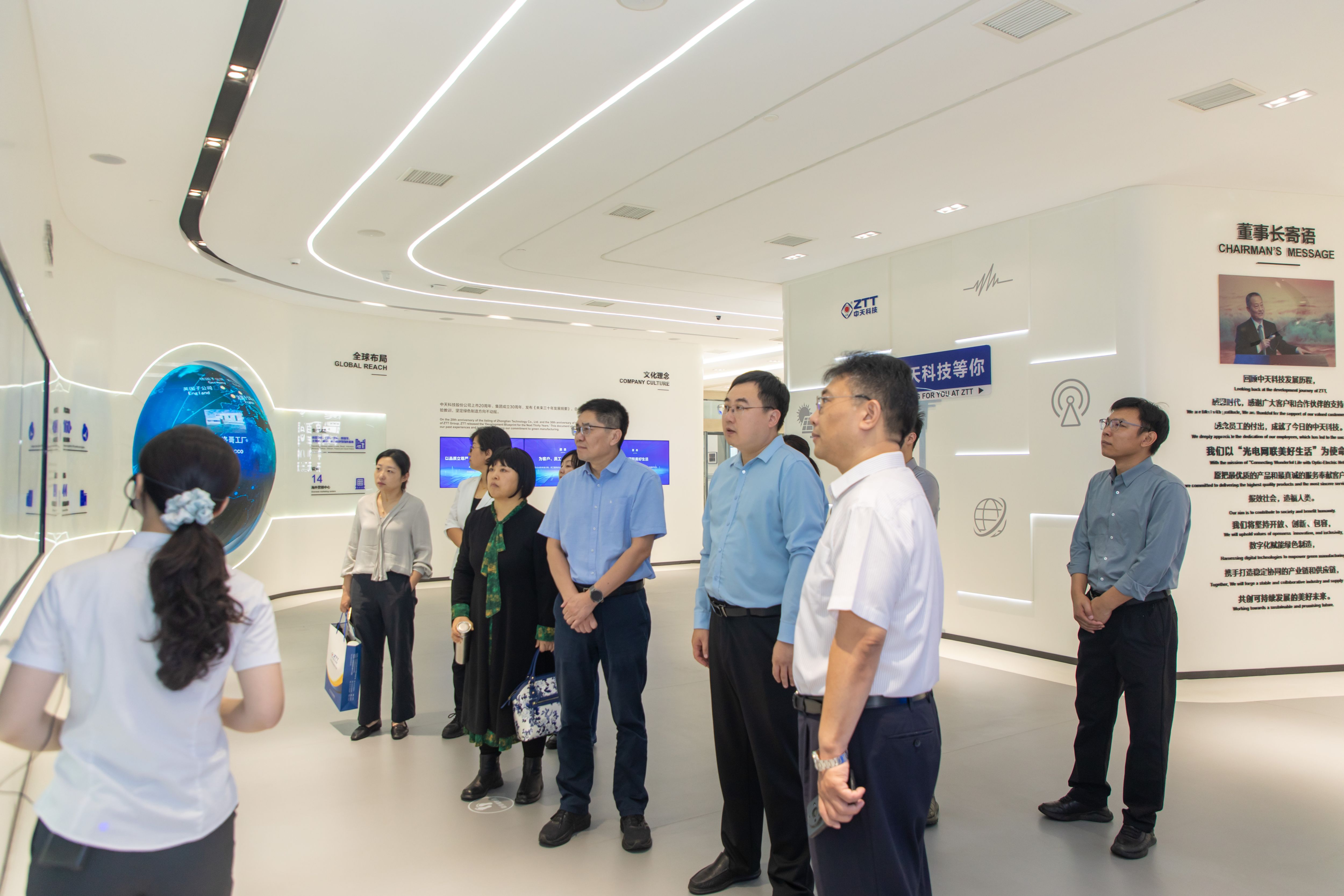 活动期间,专家团队一行参访了中天科技科创中心展厅、精密材料展厅,中天通信研发、测试、生产基地,并到访位于中天通信的山东大学校友之家。