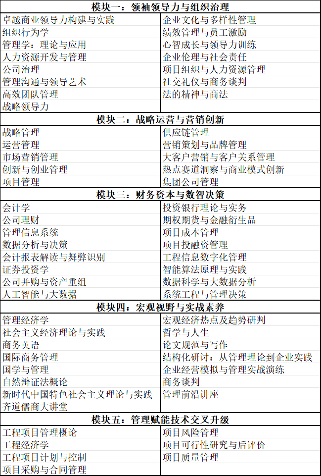 本次研修班紧扣企业经营管理全维度需求,设置五大核心课程模块,融合通用企业管理、技术与管理交叉内容,兼顾理论深度与实践实用性,采用灵活选课模式,适配不同企业家的个性化学习需求,依托山大官方顶尖师资授课,为学员带来专业、系统的管理知识与实战方法。